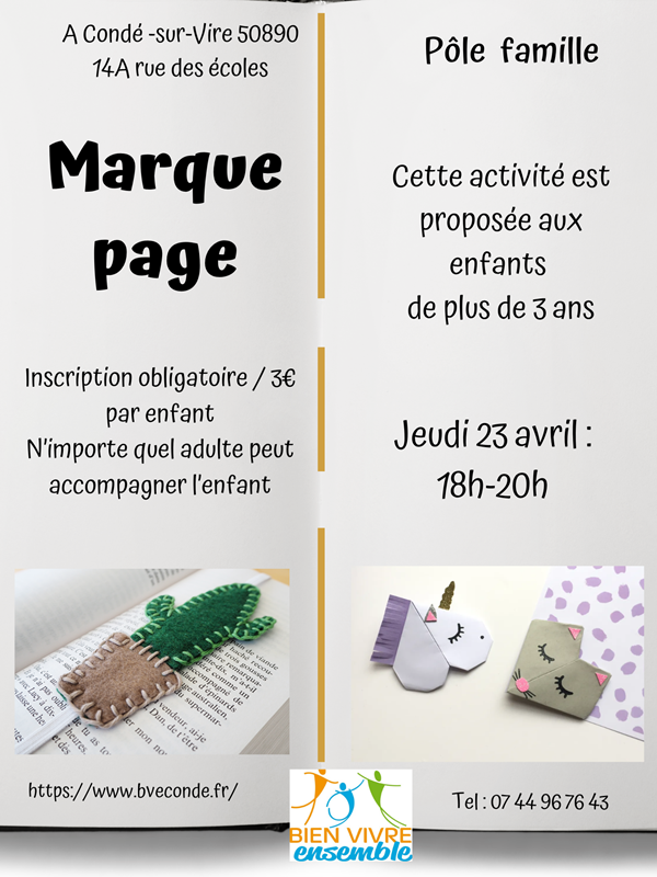 L'association "Bien vivre ensemble" vous donne rendez-vous  le 23 avril prochain à Condé-sur-Vire pour un atelier dédié à la fabrication d'un marque page.