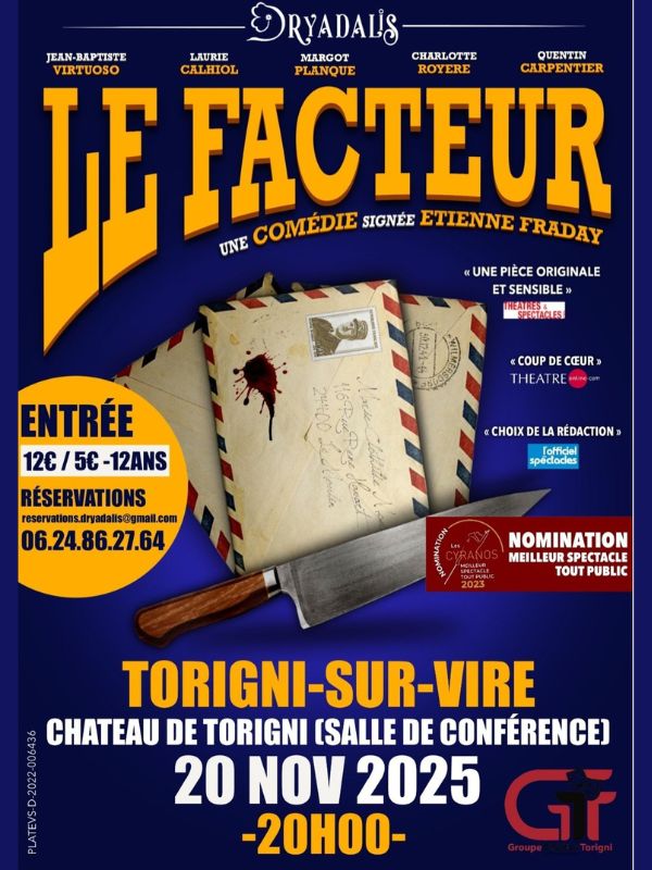Rendez-vous le 20 novembre prochain à 20h00 au château de Torigny-Les-Villes pour la pièce de théâtre : le facteur !