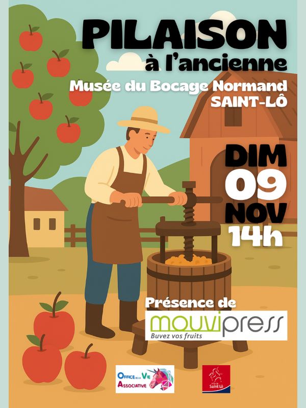 Rendez-vous le 09 novembre prochain de 14h à 17h30 dans la cour du musée du bocage normand pour la pilaison à l'ancienne !